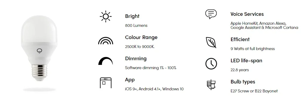 For ths installation, we settled on Lifx, a tried and tested smart light company. Lifx provide bulbs that have a built in Wi-Fi chip, so that each bulb can connect directly to the home’s Wi-Fi without the need for complicated and costly hubs. Each light bulb is capable of over 16 million colours with adjustable brightness. Lifx provides a large range of different bulbs, all of which can be added to any traditional bayonet or tungsten screw light socket.